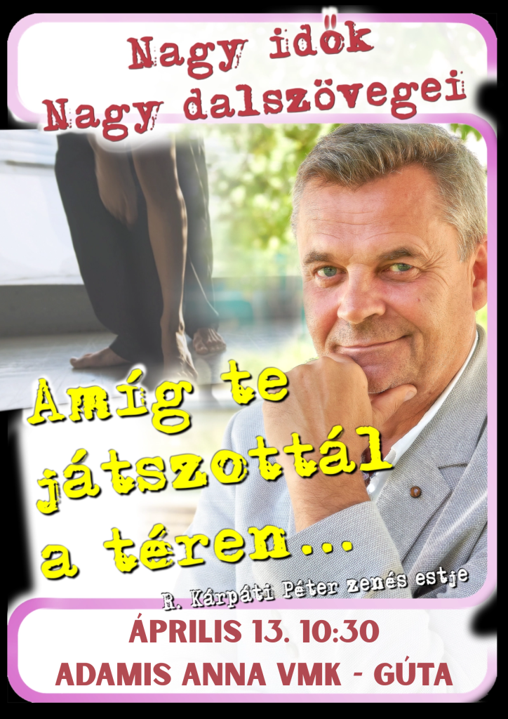R. Kárpáti Péter színművész előadása költészet napja alkalmából, melyben a magyar könnyűzene ikonikus dalszövegíróinak irodalmi értékkel bíró dalszövegeit instrumentális zenei aláfestés, és hangulatárnyaló vetítés mellett, versként tolmácsol.